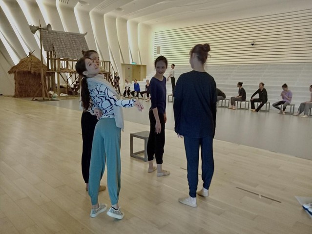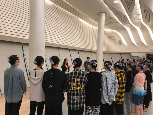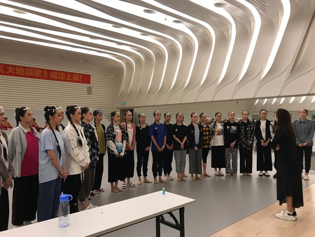 师生们在收到关于演出的指示后,第一时间统计筛选参演人员名单,确认参演人员后,学院立马组织学生们购买各地直达长沙的车票与机票,体现了学院各级领导干部及老师一贯雷厉风行的高效作风。24位中国舞的同学在杨新华副院长、带队老师刘建明的带领下于9月1号从全国各地抵达长沙,紧接着9月2号投入紧张、高效的排练当中。第一天学动作,第二天排队形,第三天上舞台连排,这些都考验着我们上戏学子的舞台应对能力与高效快速的学习能力。学院也选派燕晓霞、刘震杰、曾逊倪等专业老师先后前往长沙负责学生日常的专业教学和排练工作。