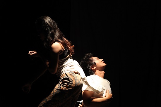 另一个世界的大门打开了,丈夫走进了飘荡鲜活的屏幕。浓妆艳抹,妩媚妖娆,身材姣好的舞女跳着妖冶迷人的舞蹈,红绸翻飞,婀娜多姿。伴奏的鼓点急促热情,原始野性的呐喊,挑逗着男人的神经。颤抖的睫毛,勾魂的大眼,纤细的腰身,修长的美腿,让男人飘飘欲仙,难以克制,简直想吞了这个惹火的美人。土著民们恰如其分的附和呐喊,黑色幽默而富有感染力。夸张的表情,声声喝彩,让人情不自禁浮想联翩。都说赵飞燕可以掌上起舞,这异域女子不输她丝毫的灵动俊俏。一位日本观众被销魂的红绸勾住,邀请上台起舞,扭动的身躯,多变的舞姿,引得全场哈哈大笑,掌声如雷。丈夫发现了幕后的一切,另一个虚拟极乐世界的浮华快乐,一头栽进了缠绵似水的温柔乡,被那美人迷的神魂颠倒。可是多次的拥吻都被灵活的躲开,扑了空,只落得一次又一次的失望。可望而不可即的虚幻爱情,让他暗恼气氛。不满地悻悻而归,看见沉睡不动的妻子,抱起她抚摸亲吻身上的气息。拉扯着她腰上裹着的白布,露出小麦色的肌肤。两人在一点点的旋转中交融汇合,在温和的暖黄色灯光里,悠长安谧的笛声里,完成爱的升华。