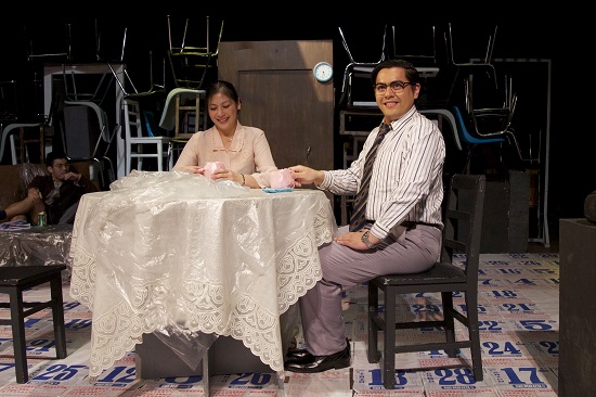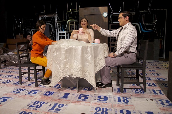 该剧的舞台也别具一格,让人眼前一亮。舞台最后方是一堵用椅子堆砌起来的墙,它象征着外界给人物的压力,就像一个牢笼一样把剧作家深深地锁在里面,既是一种意象,又代表了一个个离开他的人,空空的位置,缺席的人。“我留不住任何人。”就是剧作家在剧里说的那样。剧一开场柜子、沙发、餐桌等地方上面都放了一层塑料膜,后来随着剧情的发展,剧作家感情的转变,它们被一层层揭开,就像被埋在他心底的回忆一样。还有满地带着台湾本土特色的拼接起来的日历纸,都给人在视觉上独特的冲击。剧中的剧作家创造出一系列女性的角色,就是想探寻自己母亲当时拿刀割腕自尽时的复杂心情,但后来徘徊在妈妈的病房前他终于踏入了自己的内心,故事最后开放性的结尾也耐人寻味。
