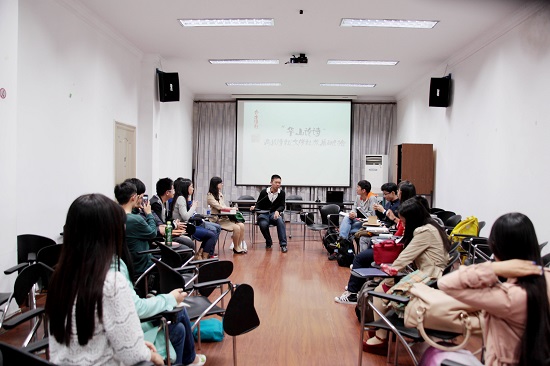 合木诗社指导老师亓季松说道,合木诗社的理念是诗歌跨学科多媒体演绎,广泛与大家互动,因而诗社便自“合抱之木始于毫末”之中取两字,作为诗社名。他认为诗歌是发自于人们内心的感受,等待人们去发掘,所以诗歌应近人。五四诗社的代表人认为诗歌要进入文学方向,分享生活的美感,同济诗社的同学则认为当下诗歌有了质感,但缺少了抒情性,应该贴近普通人倾听生活的声音,发现生活的真实,从中沉淀出美感。“心里有多少话想说出口,但要拼命扼住自己的喉咙,却让人从中听出你的情感,要理性、理智”,重歌诗社的同学阐述了自己的观点。会上,各诗社的同学们均踊跃发言,百花齐放百家争鸣,各有自己的看法和主张,不同的思想摩擦出了美丽的火花。