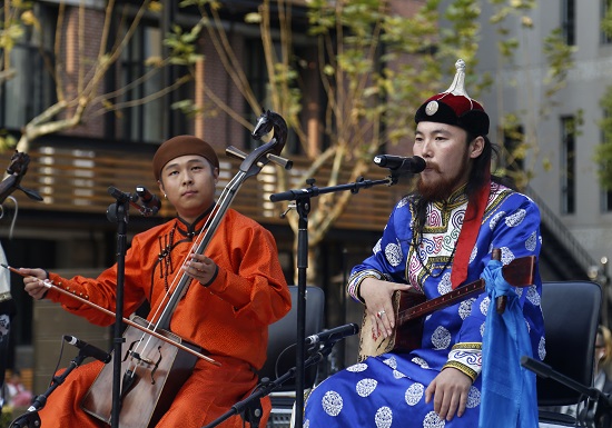 10月22日,在本次艺术创想周的演出团队中,有一部分团队带有别样的风采,他们具有独具韵味的原生态元素,图腾组合便是其中一员,团员由来自内蒙古大草原与新疆的青年成员组成,来自不同地区,却拥有同样的音乐信仰以及对音乐的热爱、对艺术的追求,因此,他们以出众的民族精神面貌相聚于此。今日下午,图腾组合于我校红楼大草坪展开了首场户外音乐会。他们身着具民族特色风采、色泽明艳的服饰,以高亢的女声与低稳的男声相融形成乐队特色之一的悠扬和声《母亲》,个人独唱《母亲的草原》,乐曲《蒙古之子》,马头琴、口弦琴等民族乐器的即兴演奏,节奏时快时缓,将现场带入一中独特的民族传统氛围之中。