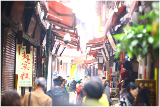 采风伊始,师生们走访了古镇朱家角。深秋入寒,朱家角沿途的集市却洋溢着浓浓的温暖。穿行于廊桥烟波之中,热腾腾的古镇美食唤醒了一天的生气。张生泉教授为大家精彩介绍了谭盾的《水月堂·天顶上的一滴水》,让学生们对这片原汁原味的江南古镇更加憧憬。
