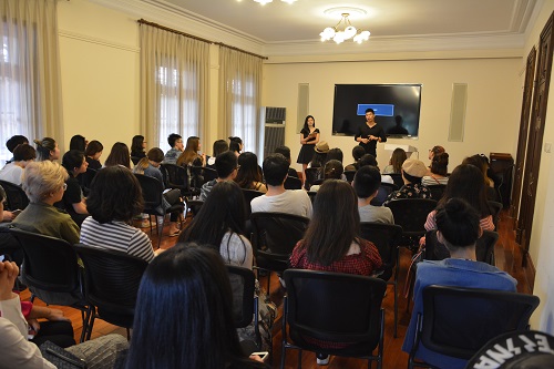 李奥是我校11级舞台设计专业的BFA,也是2015级耶鲁大学舞台设计在读硕士。 他曾是跨文化表演工作室联合创始人及前中国主席,现任耶鲁大学剧院设计顾问。他用耶鲁著名的“3S”公式切入了演讲,引起了同学们的兴趣。“3S”——是social(社交),study(学习),sleep(睡眠)的缩写,即一个人在生活中只能选择这三者中的两者。