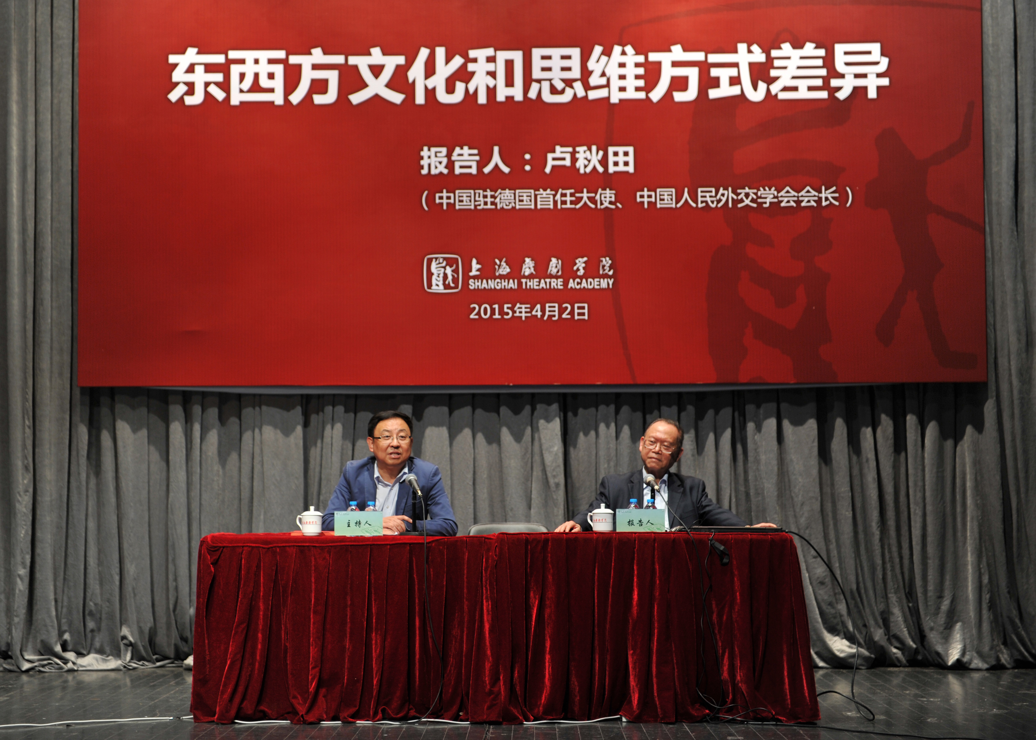 4月2日下午,端钧剧场举行了由楼巍书记主持,中国驻德国首任大使、中国人民外交协会会长卢秋田主讲的“东西方文化和思维方式差异”的讲座。卢秋田娓娓讲述他多年在海外担任外交工作的经验,赢得场下笑声和掌声阵阵。