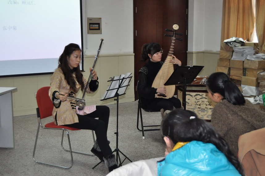 讲座共分五个部分:第一个部分:二胡艺术与戏曲音乐的历史渊源;第二个部分:二胡艺术必须紧靠戏曲音乐的滋润;第三个部分:二胡教学必须面对未来,培养现代戏曲音乐的器乐人才;第四个部分:二胡应完善与戏曲音乐结合的教学体系;第五个部分:二胡教学在戏曲学院是大有作为的。在讲座中,并穿插了戏曲学校和戏曲学院的二胡专业学生的现场演奏,博得阵阵掌声,现场气氛也很活跃。