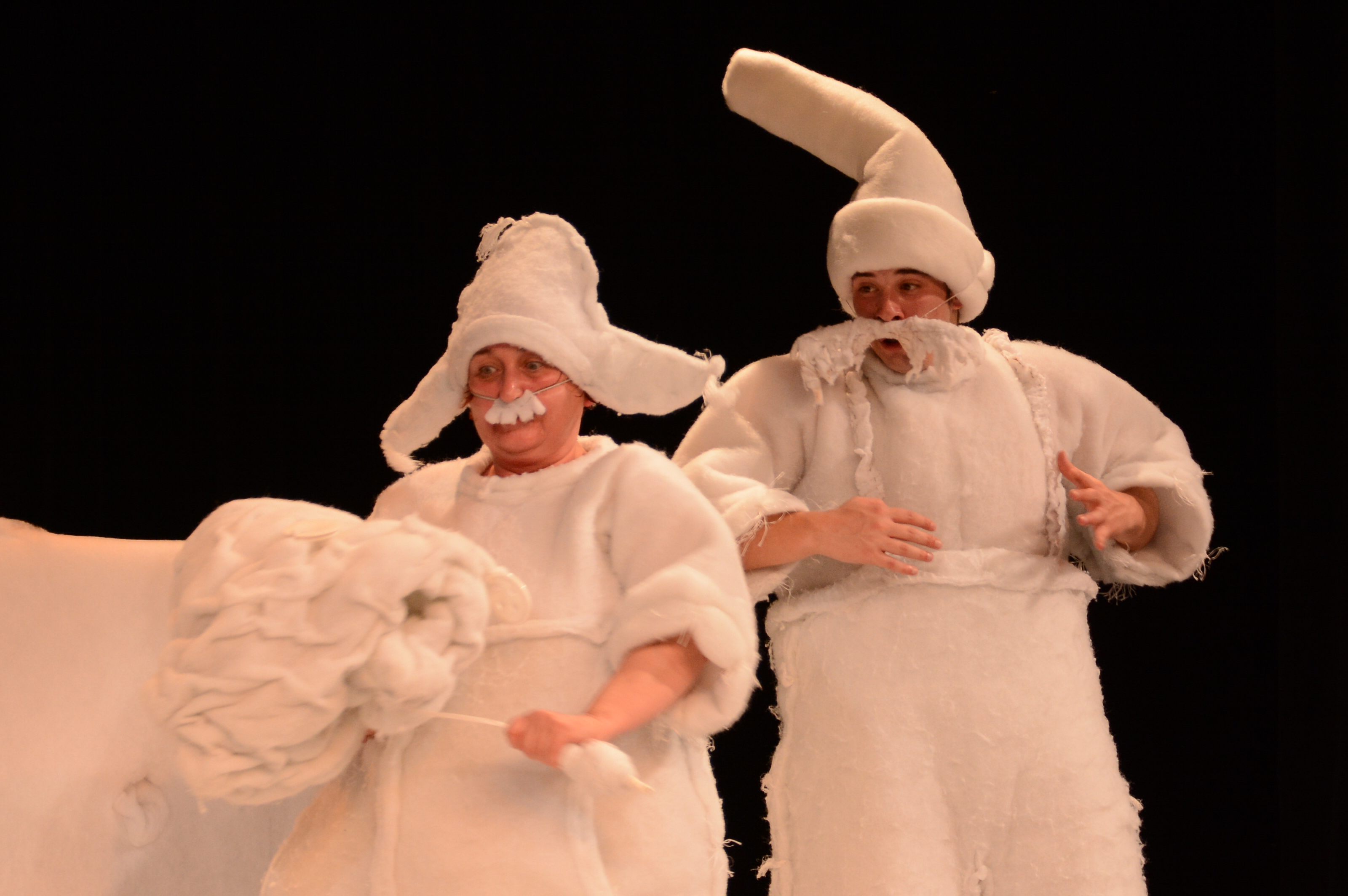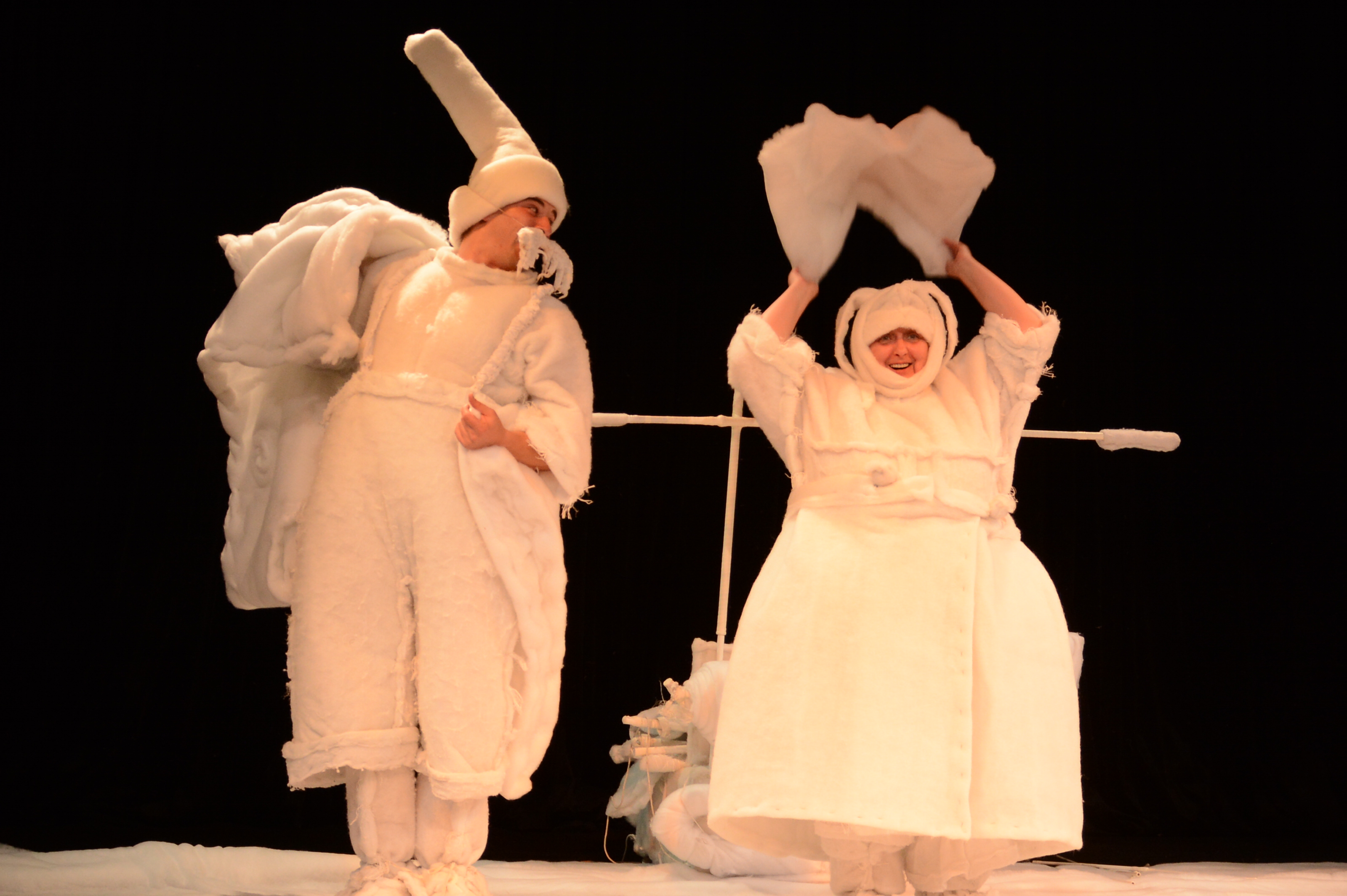 整个舞台布景非常简单,在演员的行动中逐渐展开,最后形成一片白色的雪地。这个故事虽然是发生在寒冷的雪国丹麦,但是导演却运用棉花毯来表现雪地,让整出故事洋溢着温馨可爱。演员的服装和道具也同样以白色的棉花毯为材料,总体非常和谐。演员们生动形象的表演让台下观众气氛十分活跃,纷纷与他们进行互动。在演出结束后,观众们响起了雷鸣般的掌声。