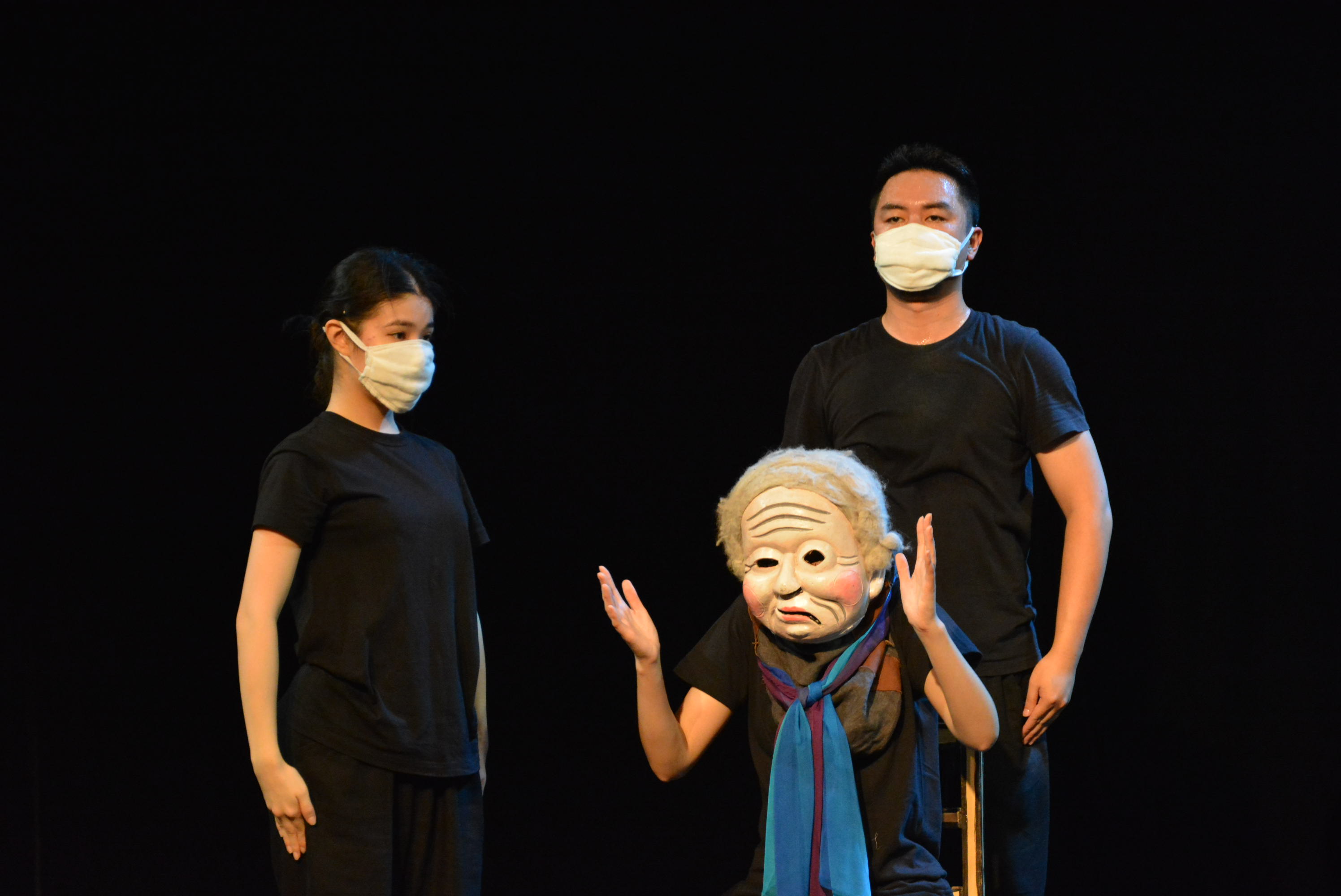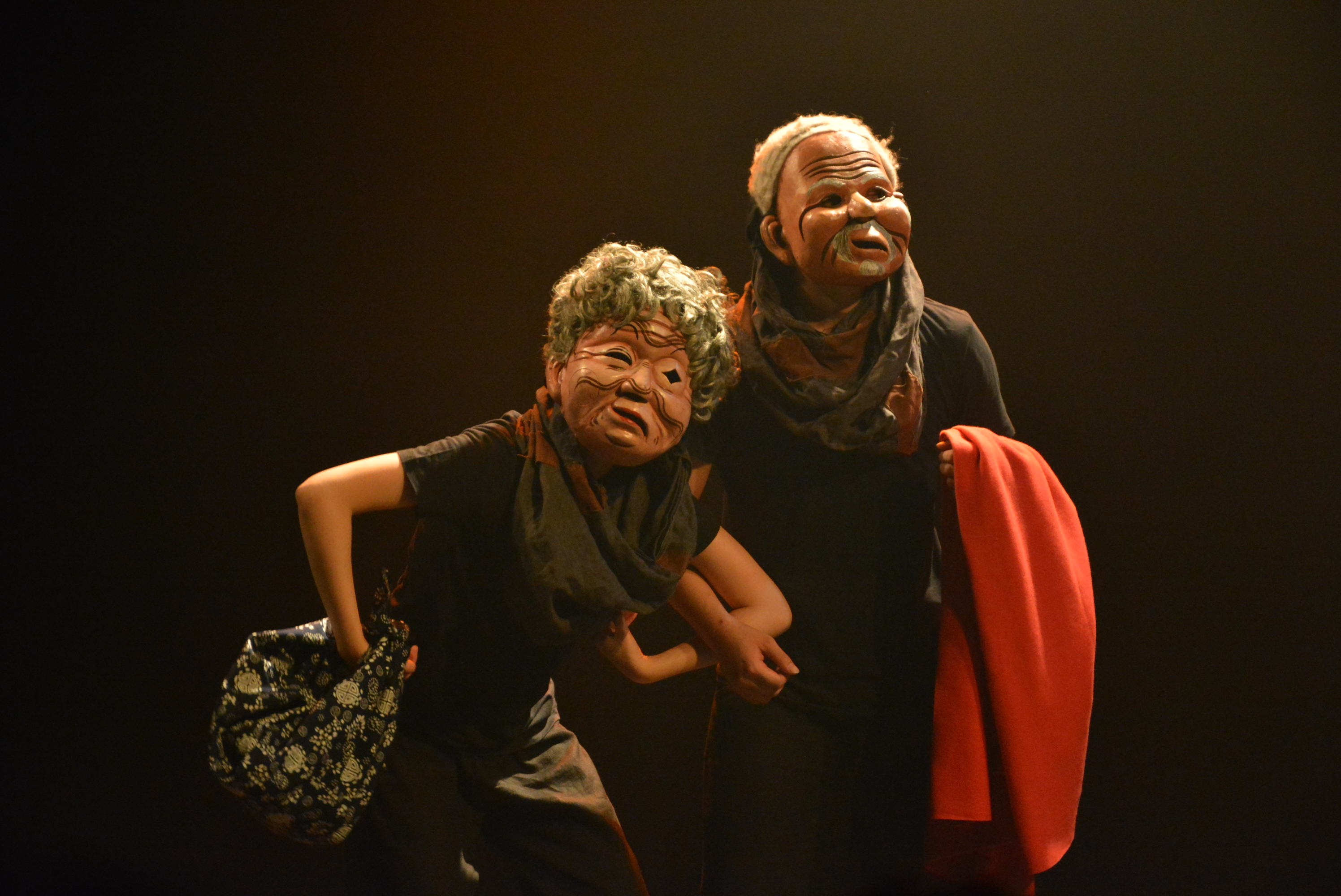 在这场戏剧里,情节主线已经不是横贯全戏的脉络了,这沉重的任务由九个部分撑起。而这九个部分又由“击鼓传花”的游戏相接串联,通过戴上面具的方式展开、结束每个故事。鼓声响起的时候,面具就像一枚话筒一般,游走在演员的手中;鼓声一落,谁持有面具,谁就拿到了话语权和行动权,去完成一个关于面具关于老者的故事。紧接着,生命的种种悖论和种种可能就在绵延不绝的鼓声中毫无保留的呈现给了观众。