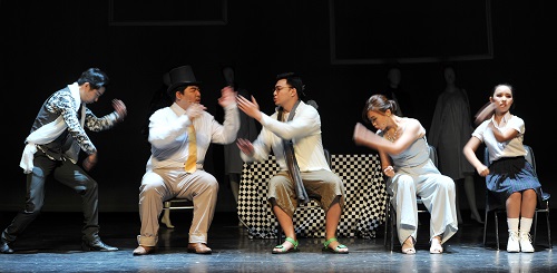 《下午,美术馆里的四个人》即是从欲望开始的一部音乐剧,作为一部“现代寓言”,剧中来到美术馆的四个访客代表的欲望分别为工作,享乐,爱情与艺术。这代表了人追求欲望的四个阶段。从最简单的生存欲望开始,人为了活下去必须一直工作,而活下去之后,开始追求名声地位以及物质上的享受。满足了物质上的欲望,就会开始寻求爱情上的慰籍,连爱情都满足了,人类就把欲望升华为艺术上的渴望。剧中的四个人看似互不相关,气死代表了人类对于欲望的进程。而若只耽于某一种欲望之中,就会变的扭曲痴狂。这四种欲望人皆有之。