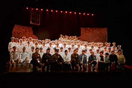 就像那些被邀请来观看《抗战家书》的海军将士们。他们远离家乡亲人,一年里有两百天都生活在茫茫汪洋上,他们在黑暗中坐着观看节目也会不失风度挺直脊梁,他们听到国歌会自动起立敬礼。整场演出就像一场来自不同时代的英雄神魂交接的见面礼,对于那一封封家书里暗藏的汹涌情感,他们的感触想必比我们更多吧。我想他们一定懂,懂身为军人的坚韧铁血,懂忠于国家的不灭信仰,懂为国为民的鞠躬尽瘁,也懂离开至亲的苦痛无奈。