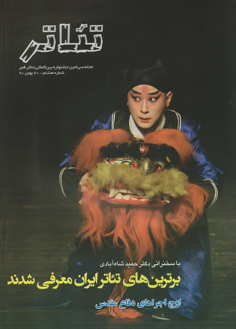 本届戏剧节邀请了不少来自各国的戏剧节组织者和制作人前来观摩,向他们推介伊朗戏剧作品。多位欧洲戏剧家向我们索取《朱丽小姐》的光盘,表示回国后要联系邀请该剧前去演出。(文:刘聪 图:法加尔戏剧节场刊封面 编辑:榕树)