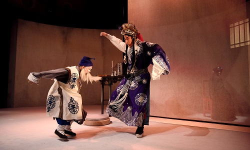 在这部戏中,不仅有大量的口语化表达,如数板等形式,还十分接地气地加入了最近大热的网络词“蓝瘦”,“香菇”,并且是十分合适的用在了用于剧情推动和活跃气氛的点头算一角身上。令我想不到的是,实验京剧竟也能够使用“定格”和“慢动作”等手段演绎人物的心理活动,快的念和打与蒙太奇般的慢动作切换,制造舞台的节奏感,收放自如。