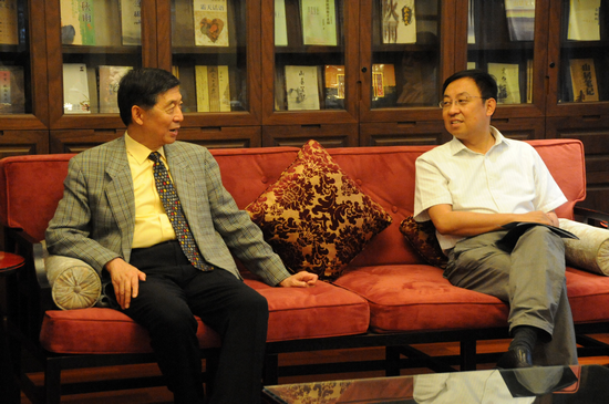 4月7日中午,楼巍书记会见并宴请了来沪出席首届后世博文汇民营企业高峰论坛活动的我校名誉教授、原全国政协发言人、外交学院院长、驻法大使吴建民。双方就学院实施文化走出去战略、孔子学院建设及开展与建立艺术交流学科方面的相关问题,进行了深入探讨与沟通。吴大使表示,他愿意竭尽全力为学院相关学科与专业的科研与学术活动的开展贡献自己的力量。(文图:院办 编辑:榕树)
