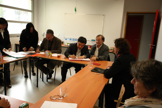 四月十三日,韩生院长带领创意学院副院长刘志新、副教授杨青青和荷兰设计中心总监Richard访问了里昂第二大学和法国国立高等戏剧学院。与此同时,韩院长与里昂第二大学校长安德鲁•泰恩先生Andre TIRANA和法国国立高等戏剧学院院长特瑞•帕瑞恩特先生Thierry Pariente共同签署了教学合作协议。