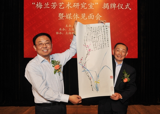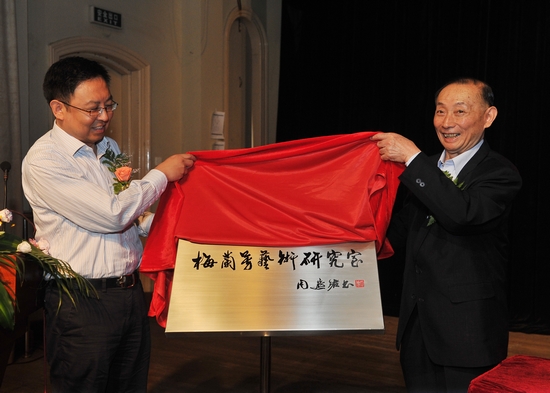图为楼巍书记与梅葆玖共同为工作室揭幕