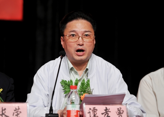 图为谭孝曾发表讲话