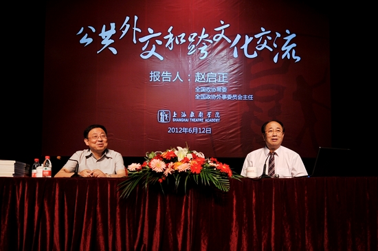 6月12日下午,全国政协常委、全国政协外事委员会主任赵启正为我校师生及部分老干部代表在上戏剧院举行了题为“公共外交和跨文化交流”的讲座,讲座由楼巍书记主持。整场讲座座无虚席,不时爆发出热烈的掌声。