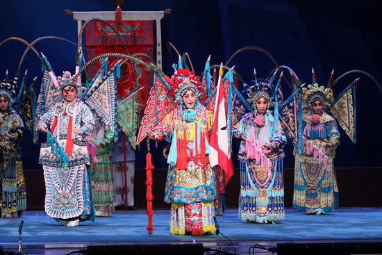 由上海戏剧学院附属戏曲学校与上海戏剧学院戏曲学院联合演出的新编京剧程派《穆桂英挂帅》近期在济南山东剧院精彩上演。作为第四届文博会的一项重要演艺活动,《穆桂英挂帅》在山东省的两场演出取得圆满成功,获得了现场观众的满堂喝彩。本次演出由全国人大常委龚学平,上海戏剧学院副院长、上海戏剧学院附属戏曲学校校长、上海戏剧学院戏曲学院院长郭宇带队。山东省委常委、宣传部长孙守刚,省人大常委会副主任国家森等观看了演出,并接见和慰问了参加本次演出的剧组演职成员。