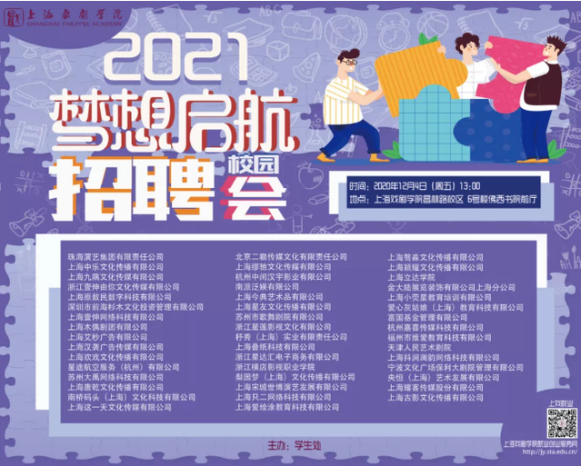 上海戏剧学院2021届毕业生秋季综合招聘会于124日下午在昌林路校区佛西书院前厅举行,本次招聘会也是我校2021届毕业生就业工作启动会所部署就业工作方案中的重要举措。招聘会共邀请到包括上海木偶剧团有限公司、上海宋城世博演艺发展有限公司、上海小荧星教育培训有限公司、上海耀客传媒股份有限公司、上海叠纸科技有限公司、上海立达学院、天津人民艺术剧院、珠海演艺集团有限责任公司、苏州市歌舞剧院有限公司、浙江横店影视职业学院、南派泛娱有限公司、富国基金管理有限公司等在内的40多家用人单位前来招贤纳士,行业覆盖传媒公司、专业院团、文化影视公司、学校、剧院、文化馆等多个领域,岗位需求达840人。