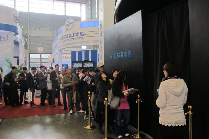 在11月6日-10日举行的2012第十四届中国�际工业博览会上,由63所国内外大学、656项参展项目组成的“高校展区”成为其中最吸引眼球的一道风景线。经过激烈竞争,上海戏剧学院上海米亚艺术中心“米亚球幕2012工博篇”获得优秀展品一等奖。本届工博会前来参观、洽谈观众10.12万人。其中境外观众2613人,较去年同期相比增加12.8%。