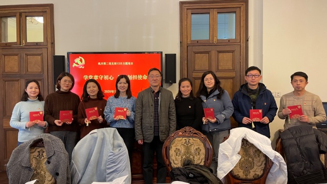 根据学校组织部关于12月份主题党日和组织生活的要求, 1225日下午,机关第二党支部在老干部活动室举行了“学党章守初心、品文创担使命”主题党日。党委书记谢巍为支部下半年过政治生日的同志颁发了生日贺卡。会上大家共同学习了党章并谈了学习体会。主题党日由支部书记徐莹主持。