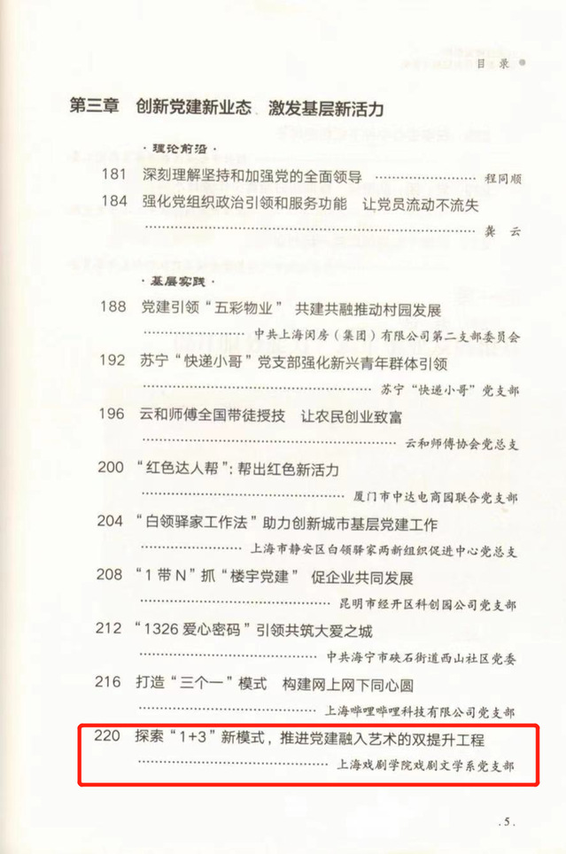 近日,人民日报《党建参阅》编辑部以“打造过硬党组织 筑牢新时代基层战斗堡垒”为主题,面向全国基层党组织开展优秀案例征集活动。上海戏剧学院戏文系党支部撰写的《探索“1+3”新模式,推进党建融入艺术的双提升工程》一文入选优秀案例。