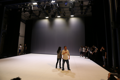 图为卢昂导演为国际版《罗密欧与朱丽叶》排戏场景