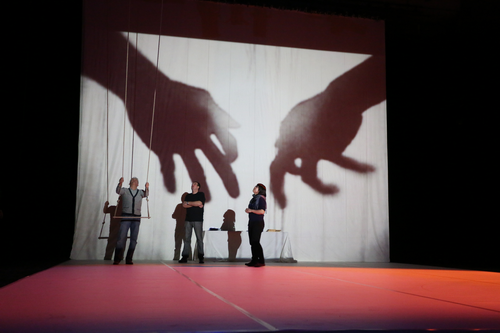 在为期三天的排练期间,卢昂教授带领由上海戏剧学院导演系、舞美系青年教师、导演系研究生以及导演系与表演系本科生组成的演员团队,在与德方舞台灯光机械以及演出协调部门的合作中表现出上戏人一贯秉性的严谨的专业态度与优良的作风准则。在对演出场地不完全熟悉的情况下,大家齐心协力配合德方工作人员安装调试与适应现场舞台装置,超时高效地完成了排练任务。在每天完成好排练任务的同时,我们还观摩了其它来自德国,波兰,罗马尼亚及巴勒斯坦各大戏剧学院的学生演出。本次莎士比亚戏剧节的主题为莎翁经典悲剧《罗密欧与朱丽叶》,每个国家根据该剧本进行独立创作,并在戏剧节开幕后的前五天晚上分别演出两场。上海戏剧学院代表团的演出作为压轴大戏安排在最后一天。由卢昂教授进行改编、导演的《罗密欧与朱丽叶》于4月16日德国时间19点在福克旺艺术大学新剧场进行了德国首演,并在当晚21点30分进行了第二场的演出。演出当晚,可容纳逾六百人的新剧场坐无虚席,演出结束后主办方告诉我们,这是艺术节开幕以来观众人数最多反响最为强烈的一场演出。来自世界各地的观众被这场完美融合中国古典戏曲神韵与当代国际戏剧理念的演出所折服,在场的许多观众虽然完全听不懂中文,但他们被舞台上演员的精彩表演深深打动。该作品结合了中国古典器乐如古琴、大鼓,传统戏曲声腔等音乐元素,舞台视觉设计简约灵动,演员们在表演中融合了戏曲中的身段,打斗及精彩的歌舞场面,将中国传统戏曲中的舞台假定性以及诗化写意的美学风格发挥的的淋漓尽致。演出结束,观众们迟迟不愿离去,演员们连续返场达五次之多,许多的观众抑制不住内心的激动,跑到了后台向导演及演员道贺,其中很多观众纷纷表示,这是他们五天来看到的最美的一台《罗密欧与朱丽叶》,他们爱极了当中的诗意的舞台形象以及音乐和多媒体的元素的运用。由于当地很多本地观众之前鲜有机会观看中国的戏剧演出,他们将我们团队称作“神秘的中国团队”,而在当晚,“神秘的中国团队”以超高的专业素养、优美的舞台呈现为在场的观众揭开了自己“神秘的面纱”,并为戏剧节五大艺术院校独立演出单元画上了完满的句号。