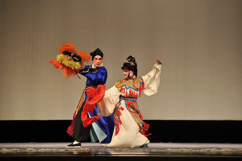 学生的努力总需要一个展示的窗口,学生们挥洒的汗水在汇报演出的舞台上变成了一颗颗的珍珠,落在地上,铮铮有声。一些学生的表演,细细看来尽还有着一些专业的味道,上下翻飞的云手,起起伏伏的唱腔,不仅给观众留下了深刻的印象,对于他们自己来说,也是一次不可磨灭的记忆,记忆中有苦,有累,有酸,有甜,也有沉甸甸的发簪和舞台上的灯光交织出的光华。