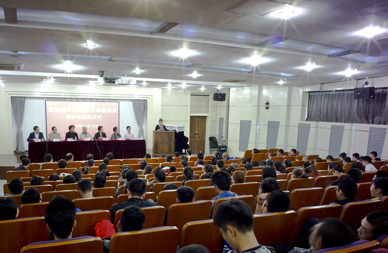 首先,郭校长介绍了出席本次颁奖仪式的领导与嘉宾以及中国京剧艺术基金会的概况。然后,基金会副理事长兼秘书长林瑞康女士宣布了本次获得“第五届中国京剧艺术基金会奖学金”学生名单(戏曲学院5名、戏曲学校5名)。随后,基金会领导和校领导向获奖学生颁发了证书并合影留念。