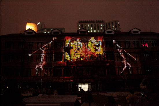 整个投影表演在晚上不同时段播放,每次都吸引了大量眼球。才进校的大一新生表示这是一次从未有过的体验和别开生面的表演形式,3D效果非常震撼,从未想过每天上课的地方也能成为一块“天幕”。这样好的效果都要归功于虚拟实验室的主创人员历时半年,走访了陕西、河南、四川等重要文化古迹及众多历史博物院,采访了相关专家,搜集了大量的汉砖、陶俑、图片、模型和历史场景内涵的动态信息,力求在红楼建筑结构的框架内,为观众带来一场饱含历史文化底蕴与戏剧艺术传承的视觉盛宴。