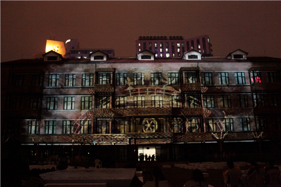 3D建筑投影《红楼@乐舞百戏》是2013年度国家文化创新工程项目《DTAM多维度戏剧艺术博物馆》的重要组成部分,而创想周展示了这一技术无疑让大家大开眼界、赞不绝口。十足的视觉震撼和冲击力配上古典的文化底蕴,让红楼这块“天幕”在创想周大放异彩。(文:学生记者 苏怡丹 图:学生记者 顾秋梦 编辑:榕树)