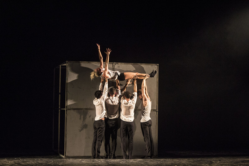 舞蹈的第二阶段是青春的白衬衫,四个阳光的大男孩在轻快的音乐声中享受纯真无邪带来的欢乐。阳光是属于他们的奢侈,“一”起挥霍,“一”起浪费,“一”是大家在一起的快乐。可是,没有一次青春是风平浪静,如同没有麦田守望者的孩子,会有从悬崖掉下的危险。气氛开始变得不安,摔下地的孩子拼命想要再次爬上那个小小的高台,那个只属于他们的领地。旋转、跳跃、翻腾,命运突然是如此的残酷,他想要的只不过是在此爬上去。即使在漫长人生中小小的跌落不算什么,可是此时此刻偌大的世界却只有“一”个人的战斗,对他而言这就是万劫不复。然而人生的进程总是多重的,有个人自白,就会有外人的客串。友情的力量将会把一切拉回正轨,内心的恐惧可以被朋友的关怀驱散,齐心合力的“一”终将他再次拉回高台,用友情为此画上句点。可是一波未平一波又起,人生怎会缺少了爱的折磨,无忧无虑的年代终将成为过往,当所有男生心目中的梦中情人,那个唯“一”的女神出现时,一切都将被推翻,兄弟可以反目,朋友成为仇敌,舞蹈进入了决斗的高潮。可是战争总有人受伤,受伤者获得的只是肉体的疼痛,而对于施加者而言那是精神的樊笼。不断拉长、萦绕的线形成了束缚着的场景,“一”个人内心痛苦在如同不安的心脏跳动的音乐中诉尽。在线的无尽挣扎中,我仿佛感觉到有一条寂寂的河流过他的心田,心脏的跳动声不再莽撞,小伙伴们又出现在了身边,那究竟是朋友们的宽容,还是曾经回忆的重现?是华丽的救赎,又或是黯淡的泯灭呢?