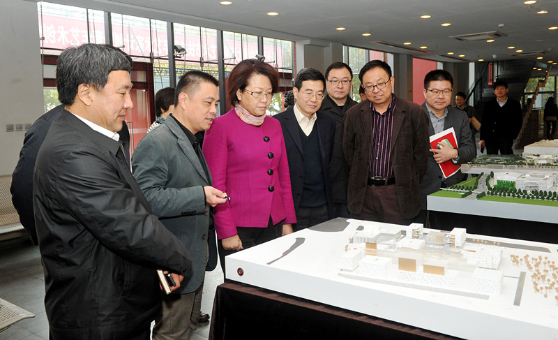 图为翁铁慧副市长一行参观我校新校区模型