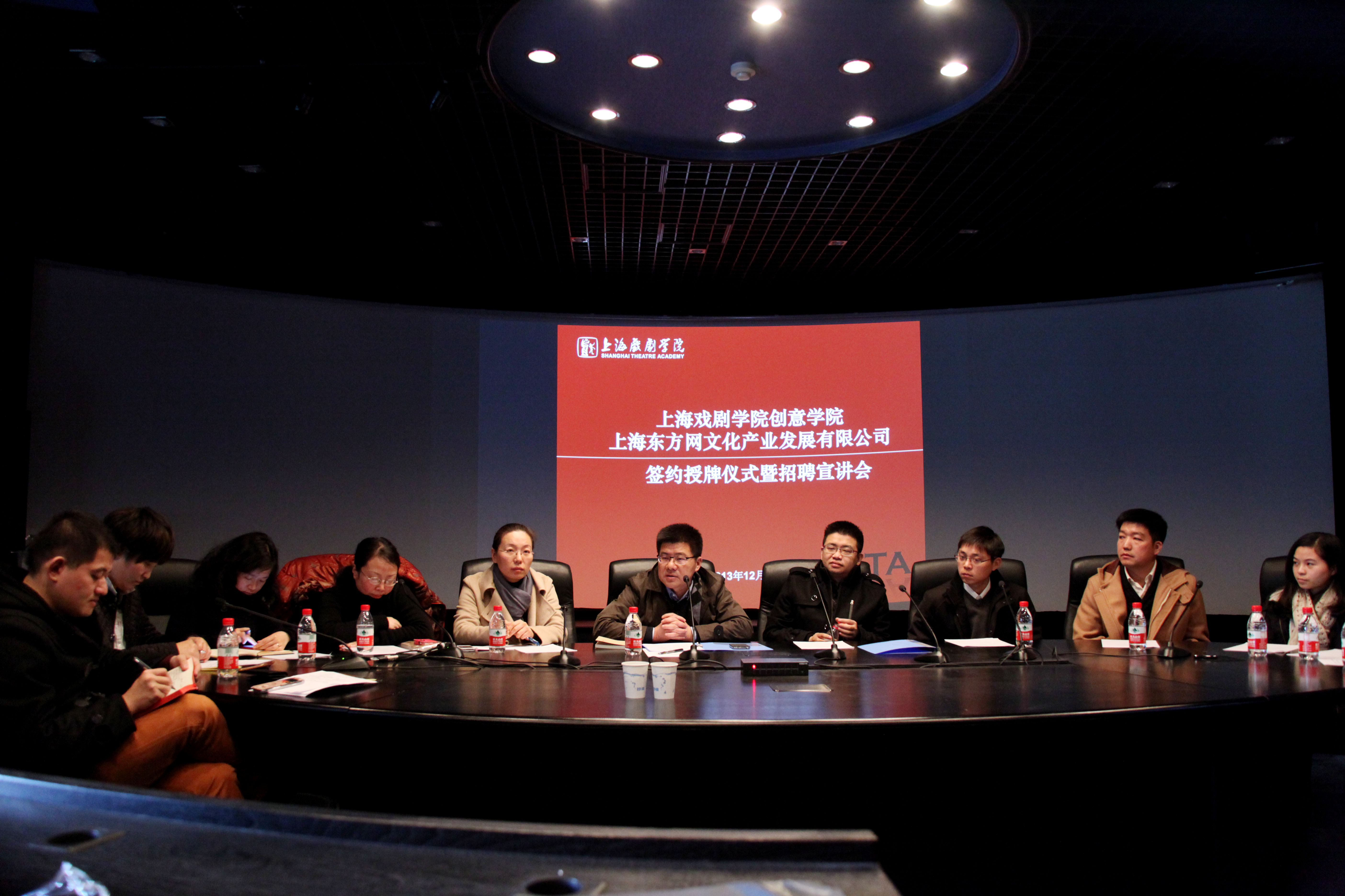 12月19日中午,创意学院与上海东方网文化产业发展有限公司实习基地签约暨招聘会在虚拟实验室举行。我校副院长、创意学院院长黄昌勇,学生工作部副部长、团委书记陈云,创意学院党支部书记方军,招就办副主任张国丽,上海东方网文化产业发展有限公司总经理朱琪,总经理助理、行政人资部总监金国勤,文化信息部总监黎明等双方领导与老师出席了此次会议。