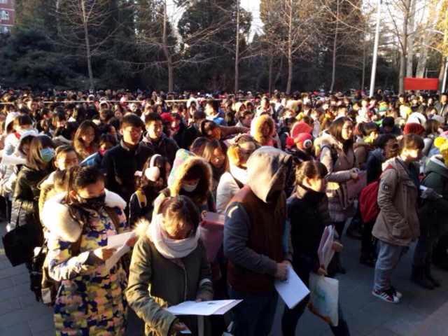 上午8:30,戏文编导类专业和戏剧影视表演专业首先同时开考,考生排队有序进场。备受关注的戏剧影视表演专业报考依然火爆,截至目前,共有将近5000人报名,其中北京考点人数2600余人,将分4个考场在4天时间内进行初试考试,是考试时间最长、报录比例最高的专业。