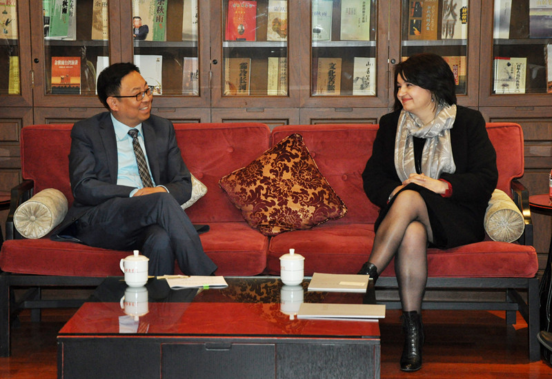 图为楼巍书记与摩尔多瓦文化部长亲切交流