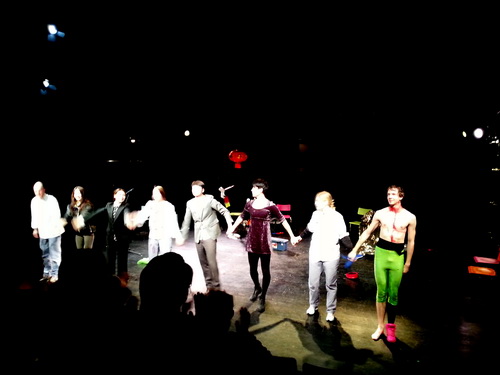 短短三场演出顺利结束,表演系携《金龙》赴德国亮相2014年F.I.N.D柏林国际戏剧节也圆满落幕。最让人欣慰的是学生的收获,正如他们在日记中写下的“在柏林,他们把戏剧当做非常神圣的一件事,演出前会有祝福的礼物,演出后大家开庆功宴一起聊感受……观众的反映给的是一种鼓励,而不是一种负担,真的有极少体会到的喜悦与感动”,“从未有过的体验……人们对待戏剧的态度是神圣的是认真的,演出时没有人在玩手机没有人在干别的事,观众给我们的刺激让我们更Cheer up”。让学生真正懂得戏剧、尊重戏剧、爱上戏剧,并将对戏剧的全新理解传播开来,或许是此次国际文化交流最大的收获。(文、图:陈莹、佳奇 编辑:榕树)