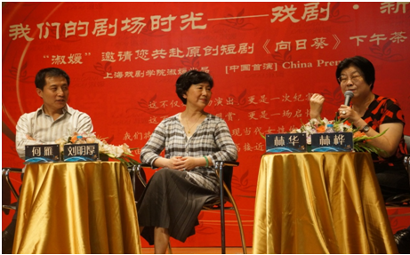 人生如戏,戏如人生。通过戏剧折射出不同的人生,品味人生百态,通过戏剧反映历史和生活的变迁。2014年6月8日,由上戏继续教育学院淑媛优雅女性高端研修项目主办的“我们的剧场时光——戏剧·新生活”淑媛原创短剧《向日葵》下午茶沙龙活动,在上海戏剧学院红楼四楼东排隆重举行。上戏继续教育学院常务副院长马麟鸿,上戏戏文系国际戏剧评论家学会中国分理事会刘明厚,上戏表演系书记何雁,女性问题研究专家、作家林华,上海中外文化艺术交流协会秘书长顾永墚、副秘书长陈巍峰,法国巴黎政治大学博士林桦及近150名来自社会各界的精英人士及媒体代表在此相聚,共同参与下午茶沙龙。