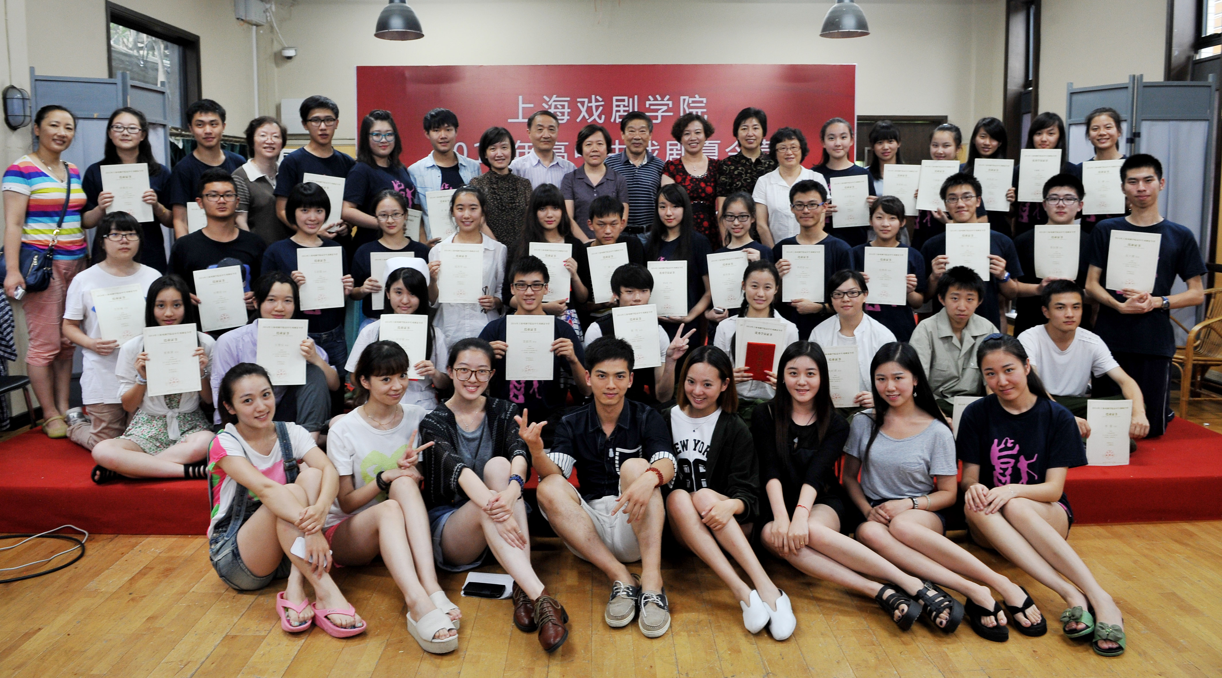 最后,学员们拿着结业证书纷纷走上舞台与领导、老师、志愿者共同合影,以这样的方式留下对这7天的回忆,再次感受舞台所带给他们的特殊经历。