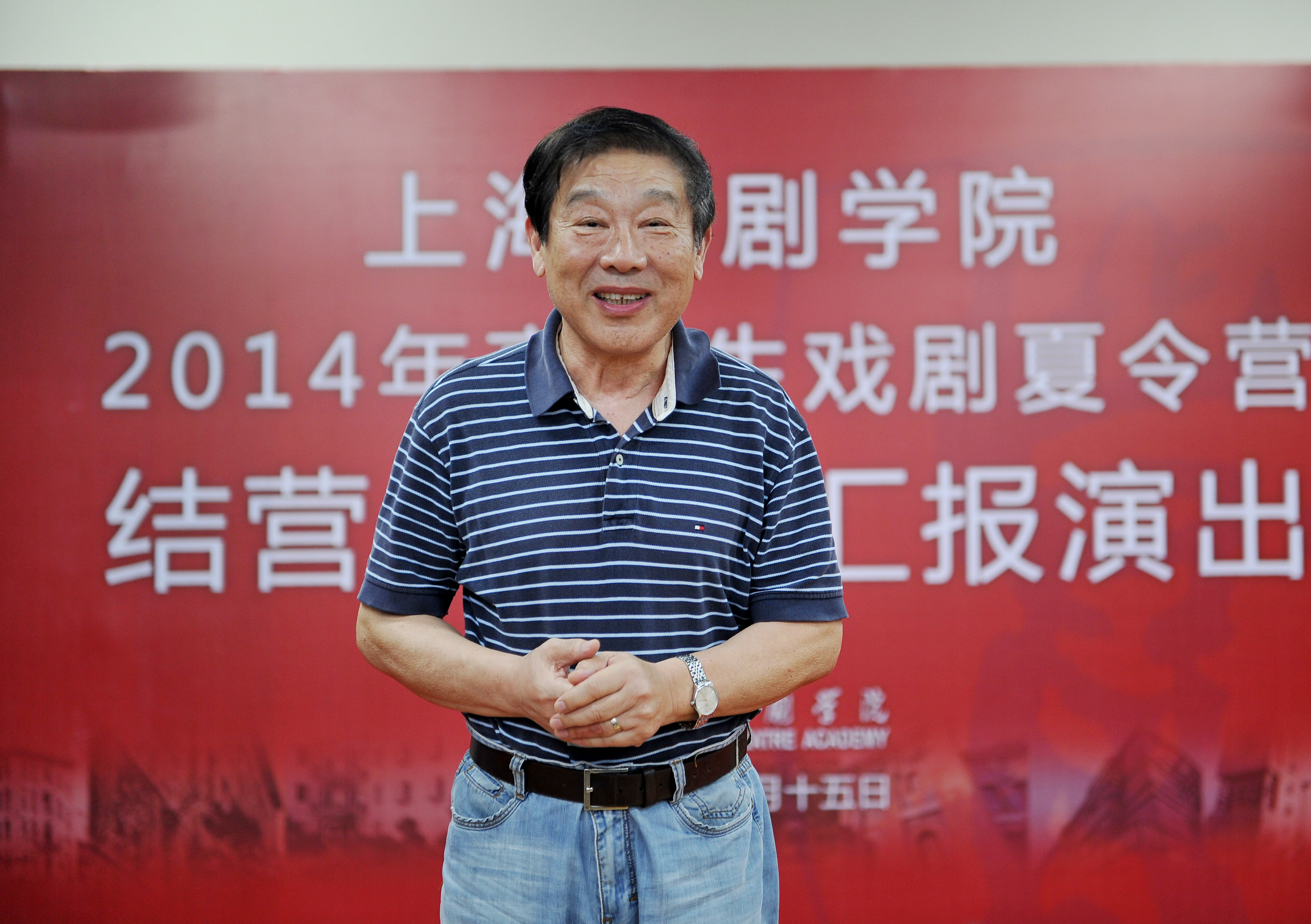 图为表演系资深教授糜曾对学员们寄语