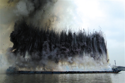 蔡国强总会玩出不一样的“火”。这一次是在黄浦江面放起了白天焰火。昨日下午5点,蔡国强在上海当代艺术博物馆外黄浦江面,完成了他在国内的首件“白天焰火”作品《无题:为“蔡国强:九级浪”开幕所作的白天焰火》。自此蔡国强回到上海掀起的“九级浪”风暴正式向观众袭来。此次在上海当代艺术博物馆展出的“蔡国强:九级浪”个展,被蔡国强称为是将探索人与自然的关系、将生态议题带回了自己的“母港”,该展将展至10月26日。