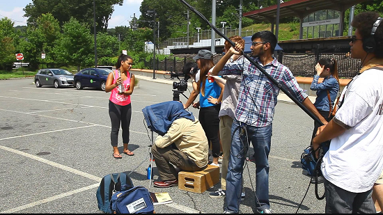 到了新泽西,我们立即投入了紧张的工作,剧本进行拍摄前的最后修改,摄影组、灯光组、录音组检查了设备,制片组确认了所有的拍摄场地,演员面试工作,每一天日夜的紧张,几乎使我们忘记了倒时差的概念。7月26日,正式开拍。第一天在当地小镇的一家书店里面进行拍摄。第二天在学校内一家餐厅外面拍摄。第三天在车站拍摄。