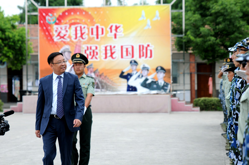 图为楼巍书记检阅受训连队