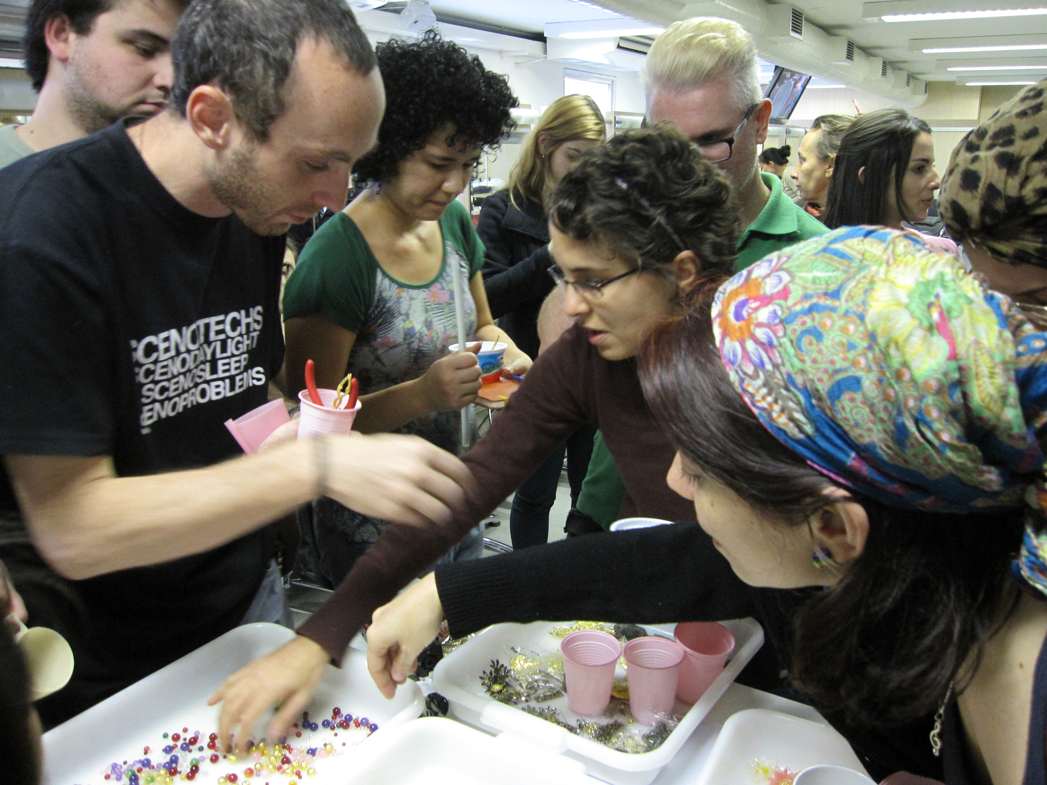 参加工作坊的30多位师生来自巴西各个城市和各个大学,他们均未到过中国,也从未看过京剧。徐家华教授一行不仅用深入浅出、图文并茂的讲座向巴西的师生介绍了中国京剧服饰与脸谱的魅力,还教工作坊的学生学画中国脸谱和制作步摇。学员们在做练习的时候,情趣盎然,常常一连几个小时不休息,陶醉在学习的过程中。经过老师的讲解、示范、辅导,热情好学的巴西师生对美丽的中国京剧服饰与化妆充满了崇拜和喜爱,表示有机会一定要去中国,要继续学习京剧化妆。