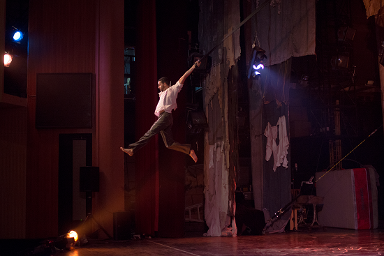 还没开始,大屏幕上就投影出了入口处人们走进来的样子,投影是黑白的,颇有好时光逝去的意思,每个小孩子脸上的表情都是不同的,但是全部充满了欢乐洋溢着活力。演出在一段非常幽默的开场提示之后开始了,然后便是演员们精彩的表演,在台上跳跃奔跑,可以看到他们的影子在大屏幕上印出时间流逝,幻影的感觉。演员们在一段演出之后突然沉寂下来,但是出乎意料之后是演员们的自我介绍,演员大多都是90后,来自世界各地,介绍时互相调侃能看出他们有着深刻的友谊。