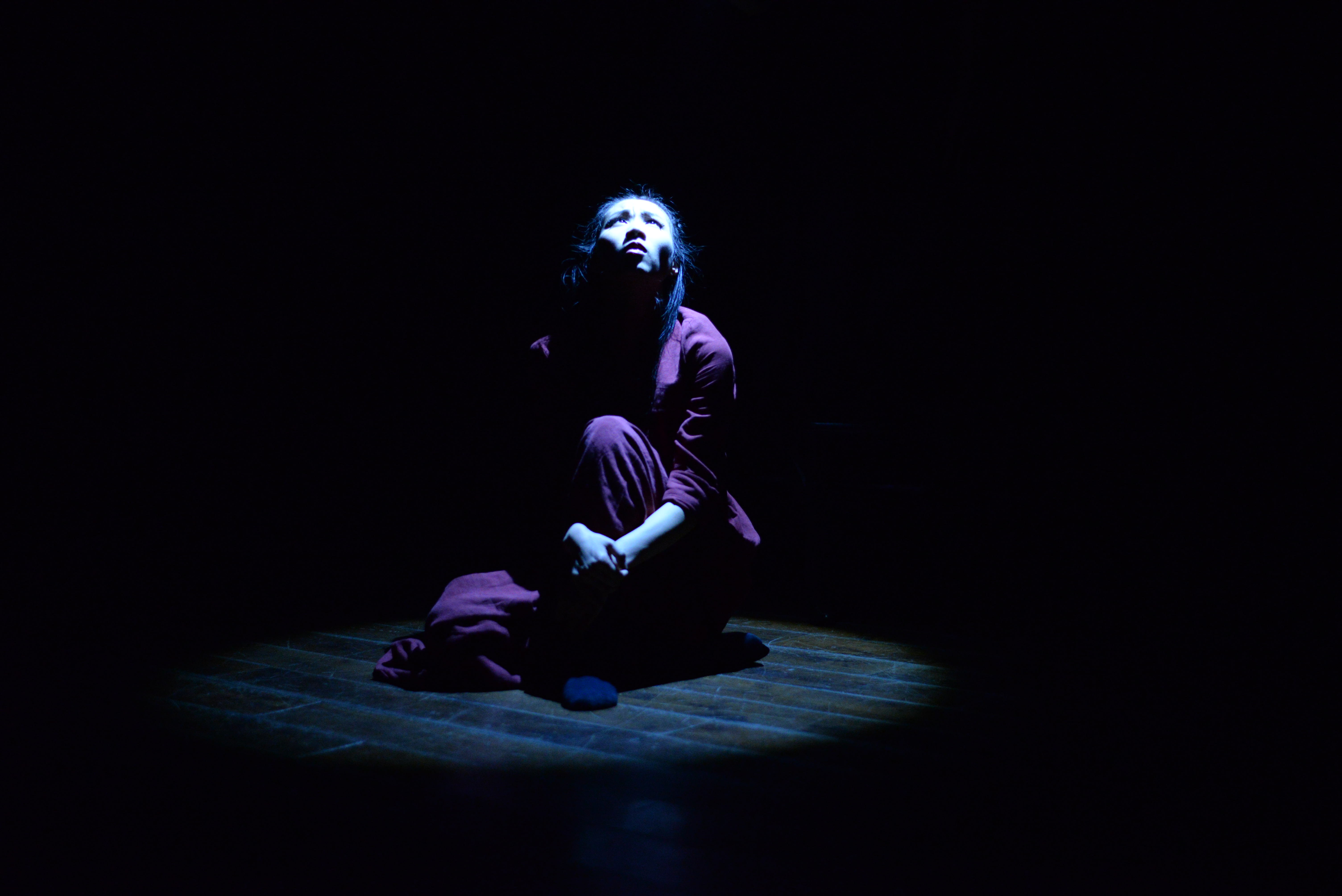 全剧仅有三位舞蹈演员和两名剧务,分别来自上海戏剧学院舞蹈学院和上海歌舞剧舞剧团。红楼的108教室没有舞台灯光设备,舞剧的灯光效果也是舞剧的重要形式内涵,就是舞蹈演员手持手电筒利用微弱的光束照射演员形成画面折影。在黑暗中,肢体动作和光束共同作用,柔软的身形和直线的光束,形成短暂的具有视觉冲击的艺术效果。