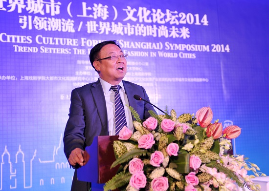 10月20日,2014世界城市(上海)文化论坛在源创创意园隆重举行。本次论坛以“引领潮流:世界城市的时尚未来”为主题,阐述全球时尚格局的变迁、东西方时尚角逐和平衡关系等前沿观点,分享世界各地城市发展时尚产业的经验与创举。上海戏剧学院党委书记楼巍,静安区委常委、宣传部长杭春芳,以及《世界城市文化报告》负责人保罗·欧文斯分别在开幕式上致辞。论坛开幕式由上海戏剧学院副院长黄昌勇主持。静安区副区长巢克俭参加了论坛活动。
