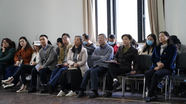 片段表演结束后,导演肖英老师给大家分享了课程思政的探索和体会。她谈到,创排《钢的琴》具有一定的当下意义,在党的领导下,国家的进步、人民生活越来越好离不开一些人的牺牲和奉献。创排过程中,带领同学们回顾了在党的领导下改革开放的艰难和伟大。同时,在分析人物的过程中力图把积极向上、永不言弃的工人精神传递给学生、观众。剧中的一些小人物就是当时下岗工人的一个缩影。正是他们这群人,不为薪资,不为酬劳,造出了“钢的琴”。这个钢的琴,象征着他们纯洁的理想,象征着他们乐观的精神,象征他们美好的兄弟情义,象征着他们永不放弃拼搏的力量。创排的过程就是一个精神洗礼的过程,对学生是很好的教育。也希望能把这样的精神传递给观众。她认为,正逢建党百年之际,专业技能的培养和知识与价值观培养是紧密联系的,同学们要用新方法解决新问题,学习、观察、实践、思考,产生新的创作性思维。