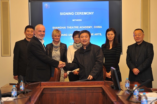 2014年11月14日,上海戏剧学院院长韩生和国际交流中心副主任张云蕾接待了德国富克旺根艺术大学校长富里克先生一行,并签订了两校间的学术合作备忘录。
