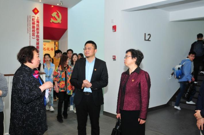随后,参加交流活动的师生来到位于舞蹈中心2号楼的上海戏剧学院党建服务中心(虹桥路校区)。上海戏剧学院附属舞蹈学校党总支副书记康路担任讲解,为师生介绍党建服务中心建设情况,带领各支部党员师生参观了舞校红色主题作品展览,引导大家在红色作品中感受革命精神,接受党史教育。刘灏书记还带领党员师生们重温了入党誓词。